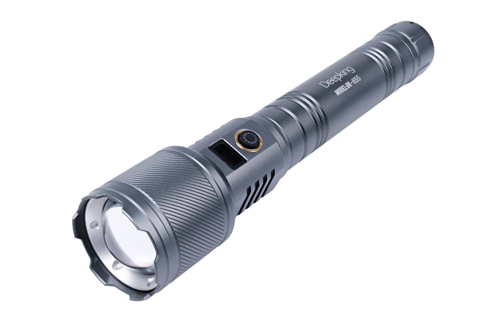 Item No:DK-652 Series:Flashlight Lithium Battery: 2200mah Light power: 5W Ctn/pcs:80 CTN Size: 36.5*36*48CM Color:Silvery
