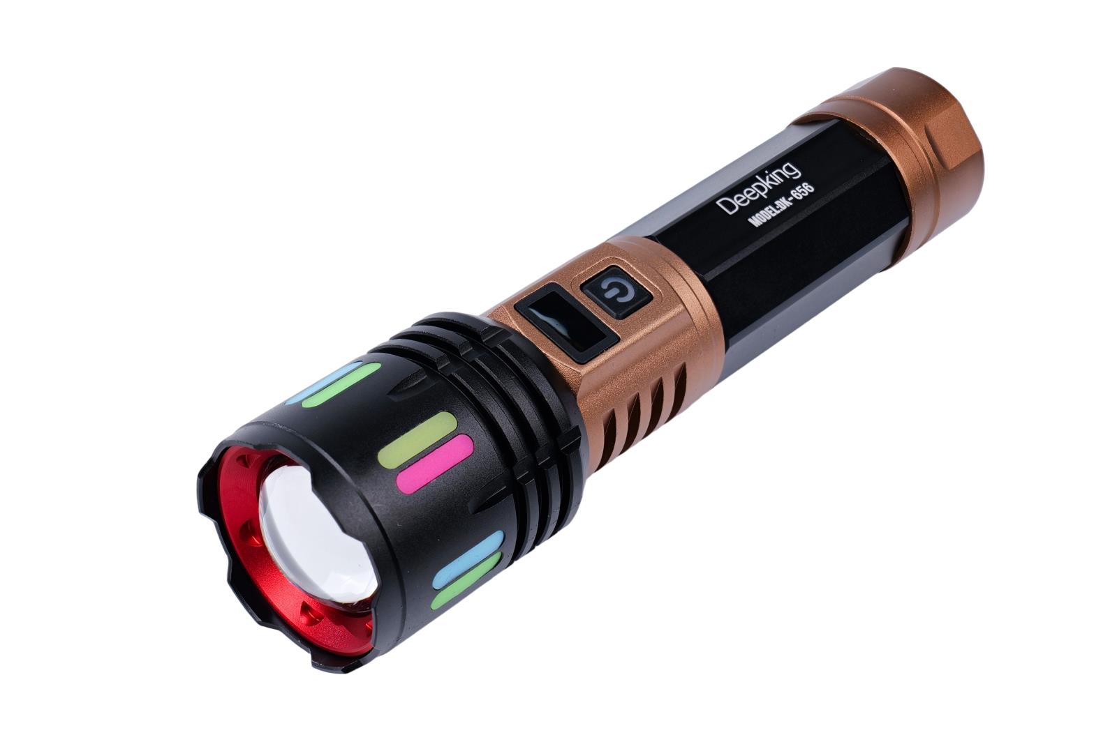 Item No. : DK-632 Series: Flashlight Capacity (mah): 6500 Light power: TG White laser Ctn/pcs: 60 CTN Size: 48*45.5*34.5CM Color: Black